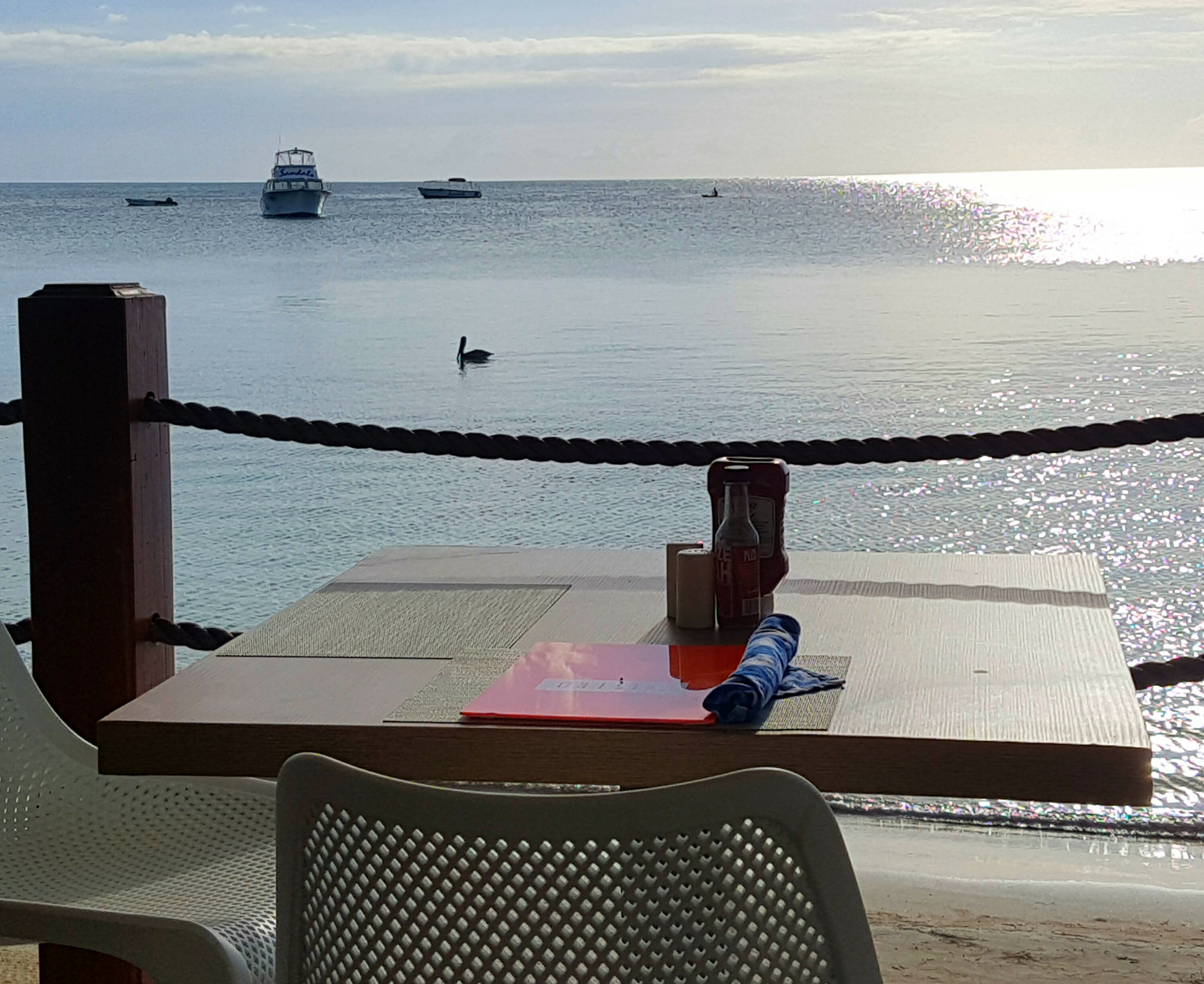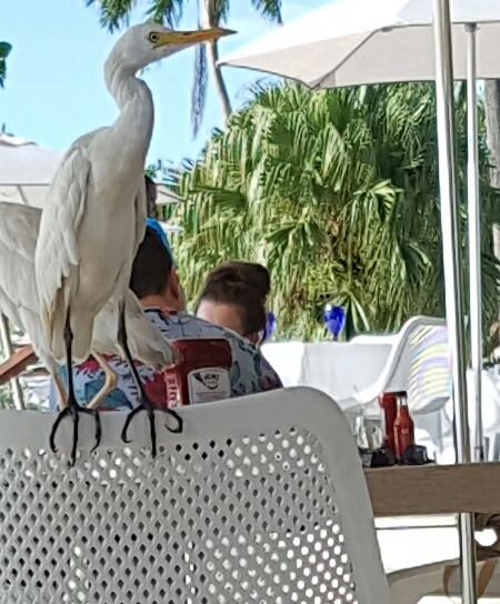 By this time we were both feeling pretty sleep deprived so our trek was less of an explore and more about getting our bearings. We found the main dining area (very important!) and the beach very quickly, and got a sense of where many of the main restaurants are. The beaches have lots of comfy spots to bask, there are drinks available everywhere, and pelicans constantly fly up and down the shoreline. Egrets scavenge near the outdoor eating establishments!