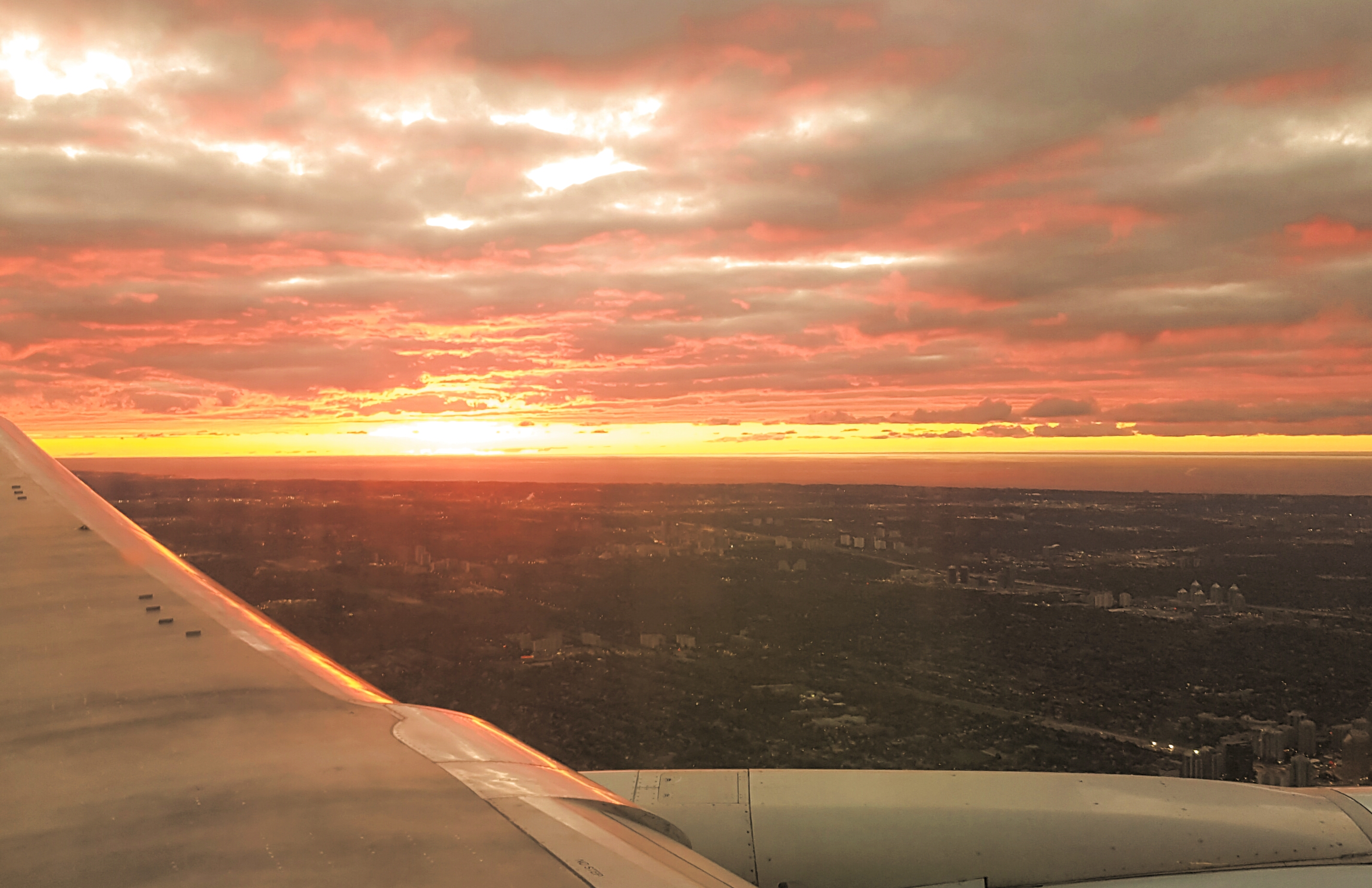 Boarding our 767-300 to Toronto just after midnight we hit the only snag of the trip – someone on the plane was sick and had to be deplaned, the plane had to be “groomed” and the fuel topped up, costing about an hour before takeoff. The storm was setting in so it was a bit bumpy heading over the Rockies, but soon after the trip became calmer and we tried to get some sleep,