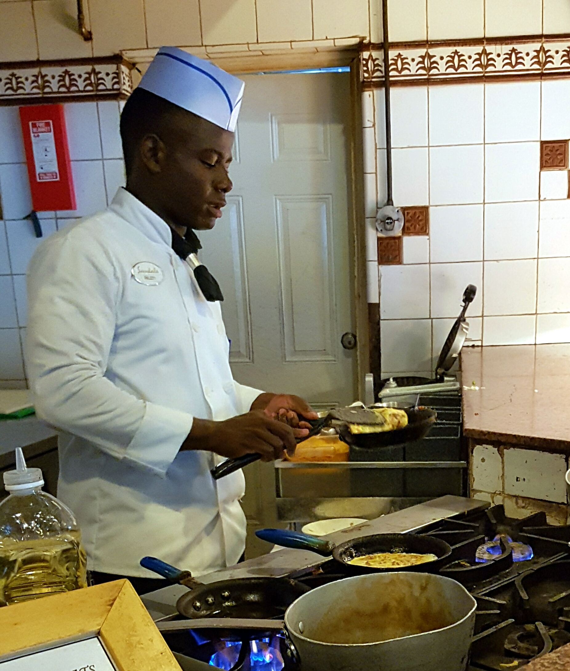 We got up a little later again today, and on our way to breakfast we stopped by the Island Routes desk to see what outings might be left for us today and tomorrow. We chatted over our options while we enjoyed our Blue Mountain coffee and breakfast buffet – another fine omelette – and then went back to the desk to see if we could customize. We ended up being able to leave almost immediately to see Rose Hall and to do some shopping in the souvenir plaza near there.