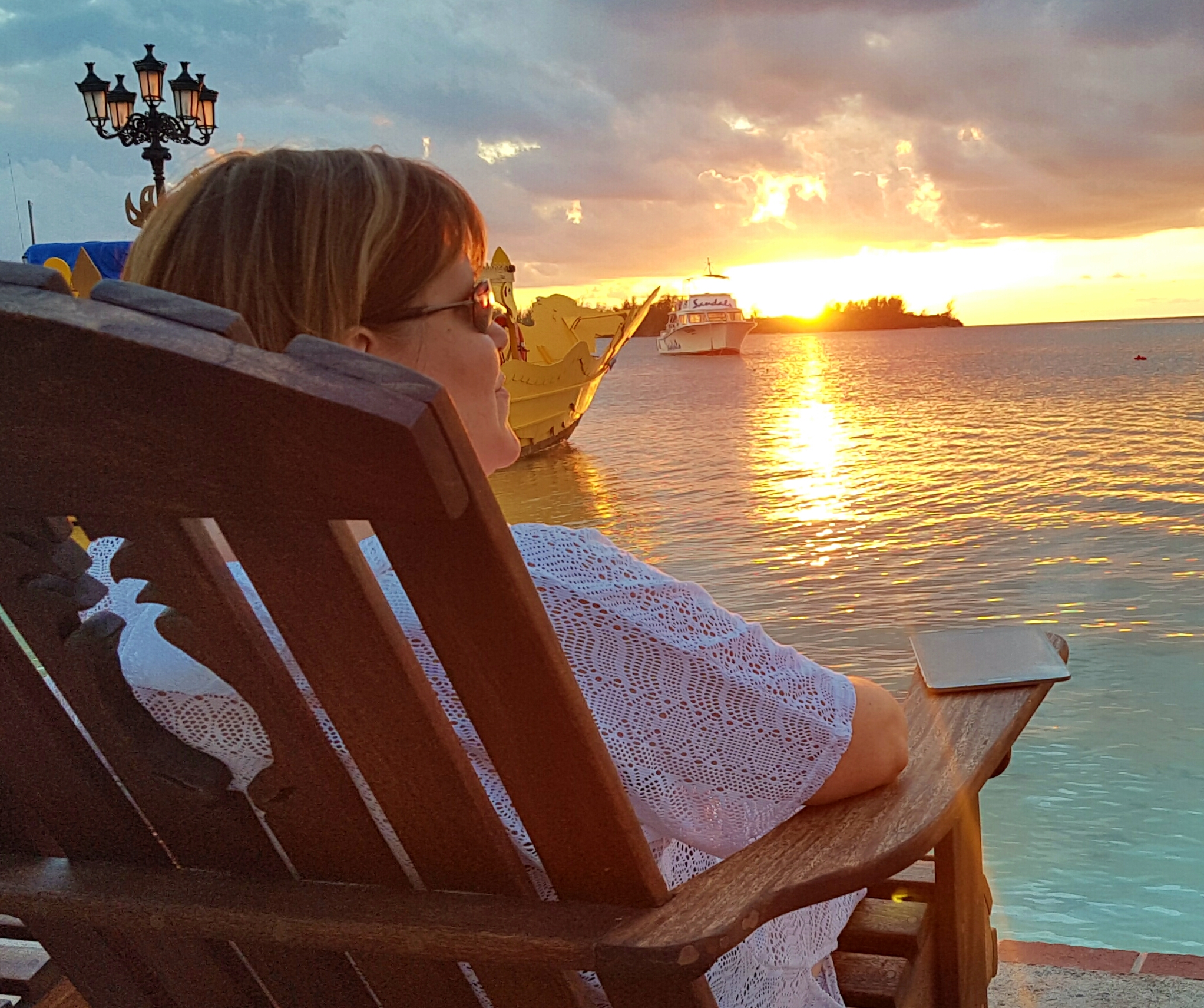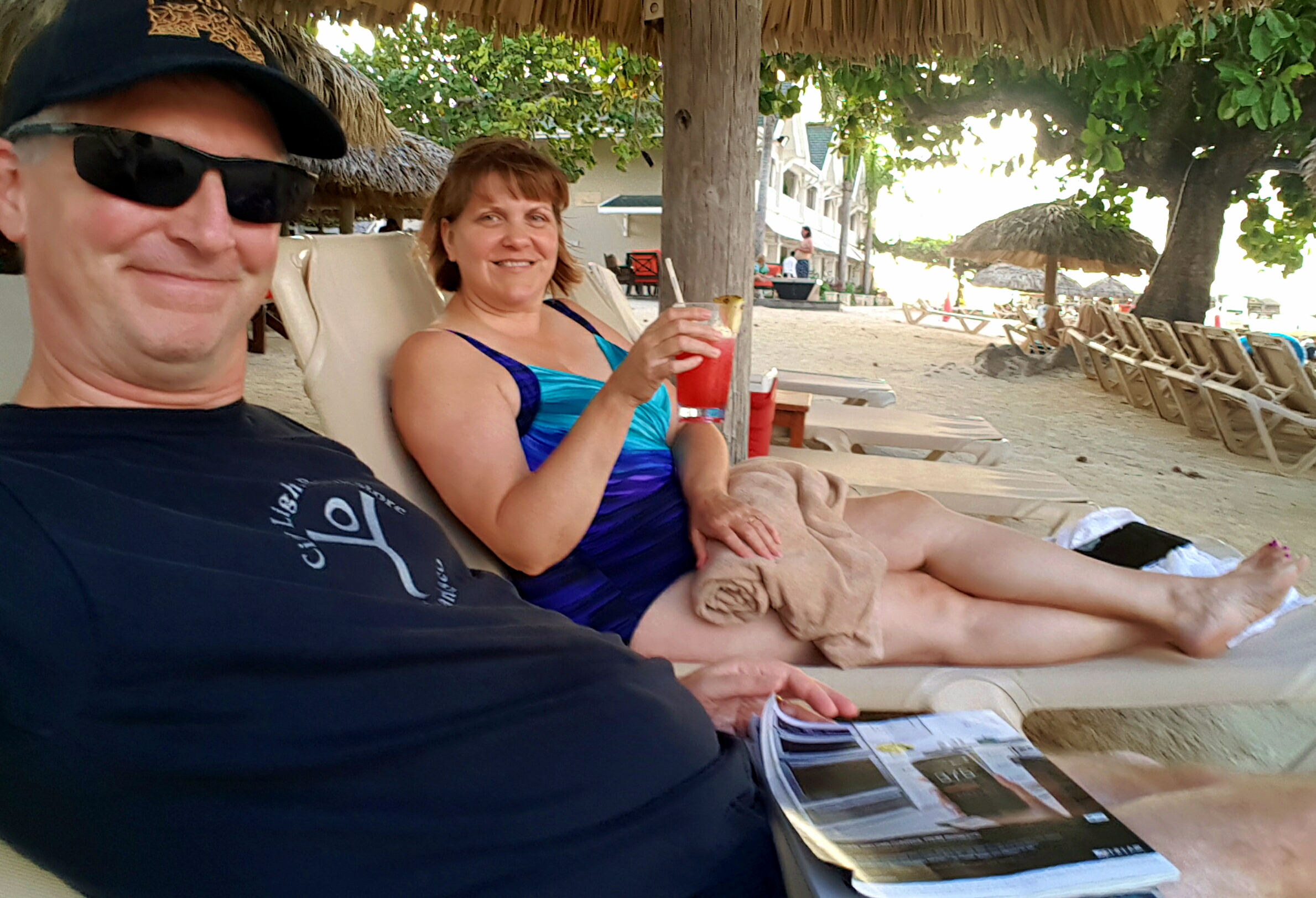 George then took us back to the resort where we were just able to get in to the end of the lunch at the Regency. We made a reservation at one of the resort restaurants for dinner, and then spent the balance of the afternoon lounging in our room and lounging by the beach with rum drinks, books and magazines, and the views.