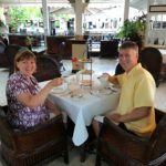 Our last dinner was at Eleanor’s which features – fittingly – Caribbean cuisine. We had a lovely meal again, with crab cakes, spring rolls, wedge salad and a very tasty coffee rubbed sirloin steak with a cabernet reduction. This restaurant is outdoors on a patio as well, so we enjoyed a warm evening atmosphere close to the sea while we ate.