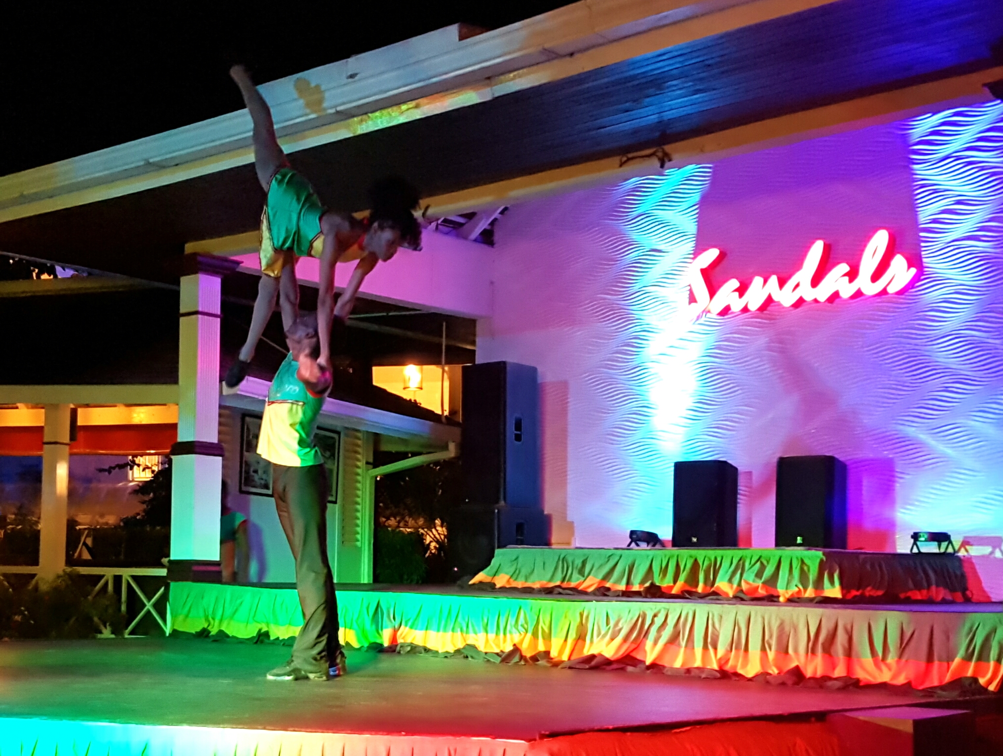 After dinner we wandered toward the main stage and heard the end of the local reggae fest performance, and witnessed one of the oddest musical shows of our stay: a Jamaican country singer who was a vocal ringer for many popular American country stars. I’m not generally a country music fan but he was very entertaining – you’d swear Willie Nelson was at the resort.