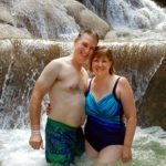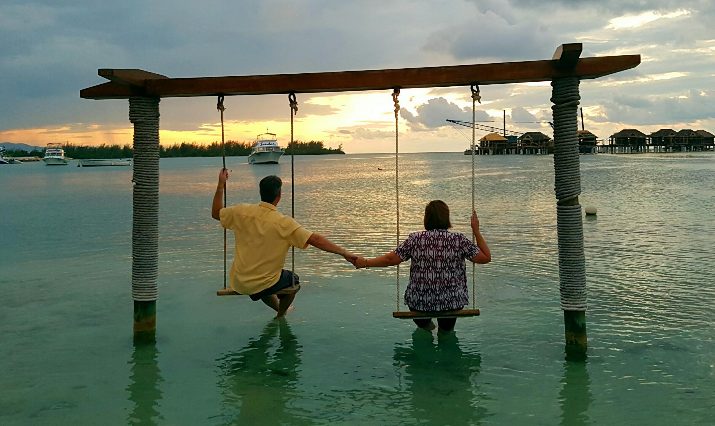 Faced with the impending end of our vacation, we started to plan for the trip home, starting with a quick trip outside the gates of our resort to the Scotiabank just past the end of the resort driveway. After figuring out how to get American money instead of Jamaican from the ATM, we stashed a small travel fund away and returned to the resort, just in time for the last sunset. We met a British couple sitting in a pair of Adirondak chairs watching the sun go down, and were able to persuade them to snap a few shots of us in exchange for returning the favour.
