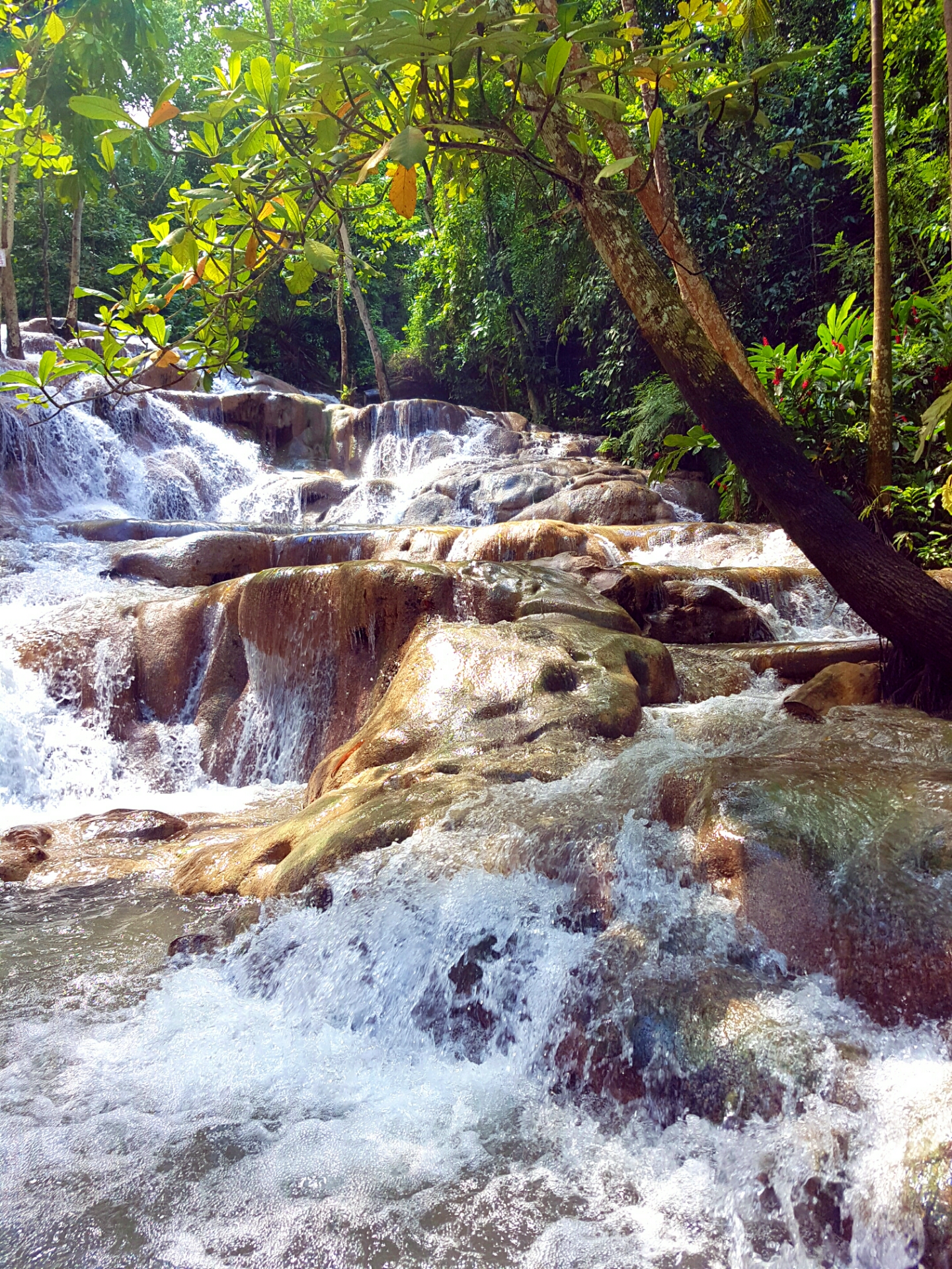 Melbourne and Orville (technically the videographer) were our very high energy guides for the hike up the falls. We joined them and a group of about twenty-five others and made our way to the foot of the falls at the point where they empty out into the ocean. After a brief introduction and some safety tips, we started a human chain to climb the 180m stretch up the river.